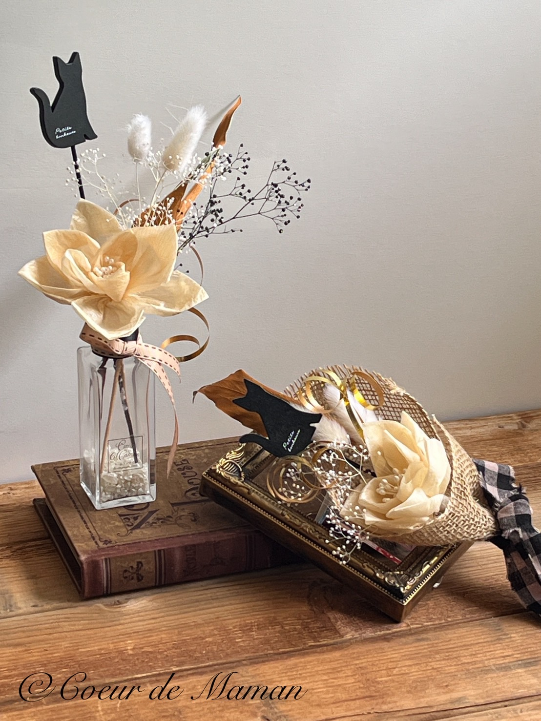 木の皮を使って花びら1枚からお花を作ります。リボンはお好きな色を選べます。 ミニブーケ1,000円 ※ディフューザーご希望の方は+500円。現地にてお支払いください。 |