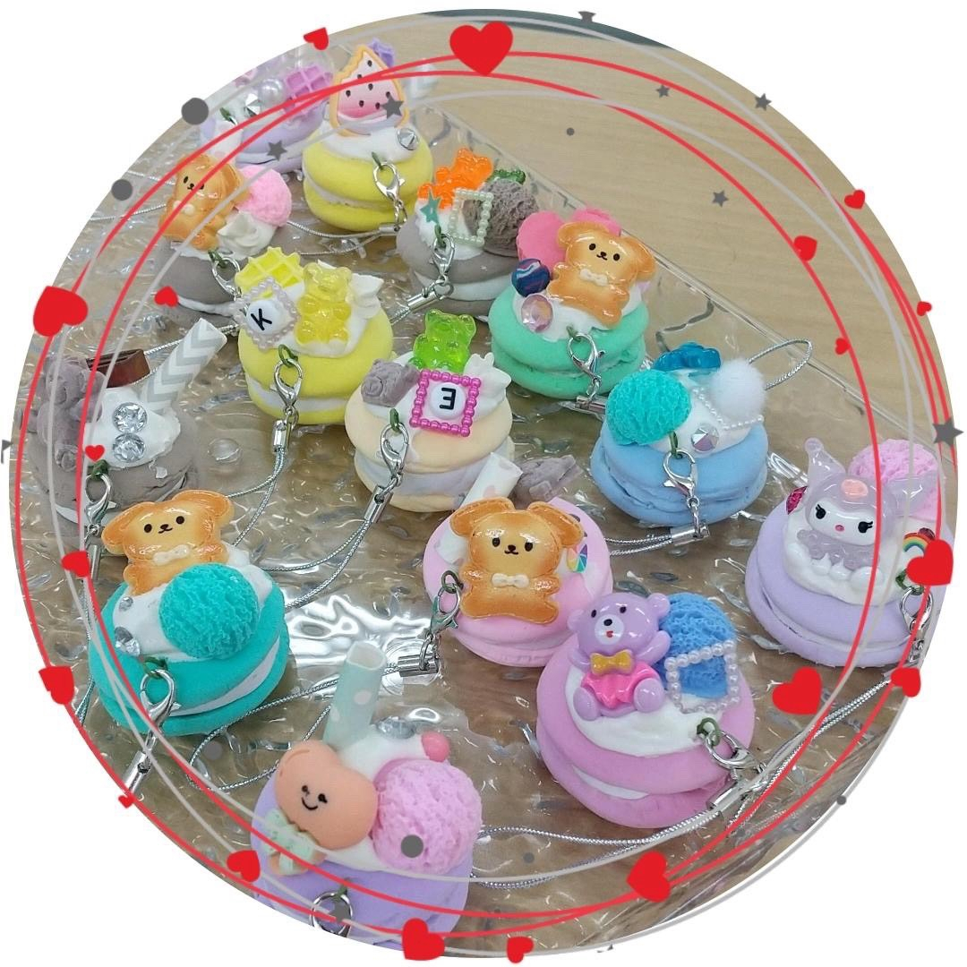 マカロンデコ500円 ※招待状は「デコポーチ」と「デコマカロン」の写真が逆になっております。ご注意ください。 ※デコぬいぐるみ(モールドール)・デコポーチの場合+300円。現地にてお支払いください。 |